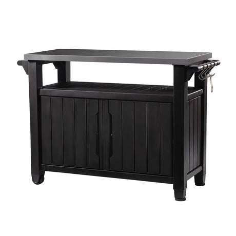 Keter Outdoor Entertainment Storage Station Grilling Table, Non-Brushed Brown