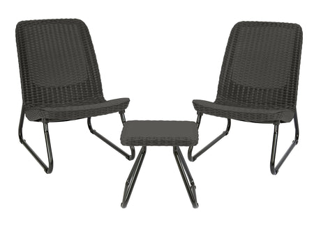 Keter Rio 3-Piece Outdoor Set, All-Weather Resin Rattan Patio Lounge Furniture, Graphite