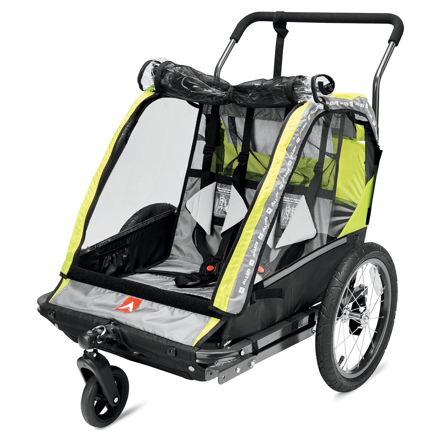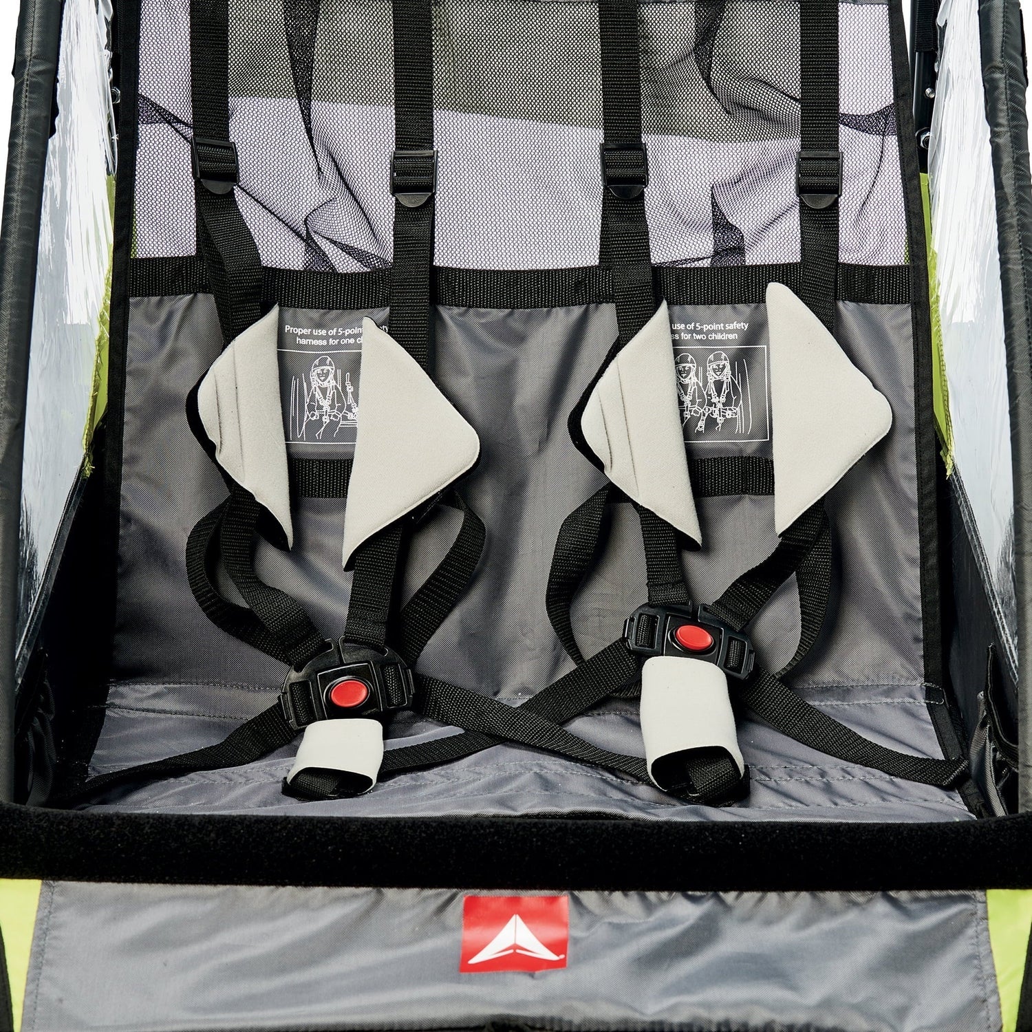 Allen Sports Deluxe 2-Child Bicycle Trailer & Stroller, max capacity 100 lbs, Model AS2, Green