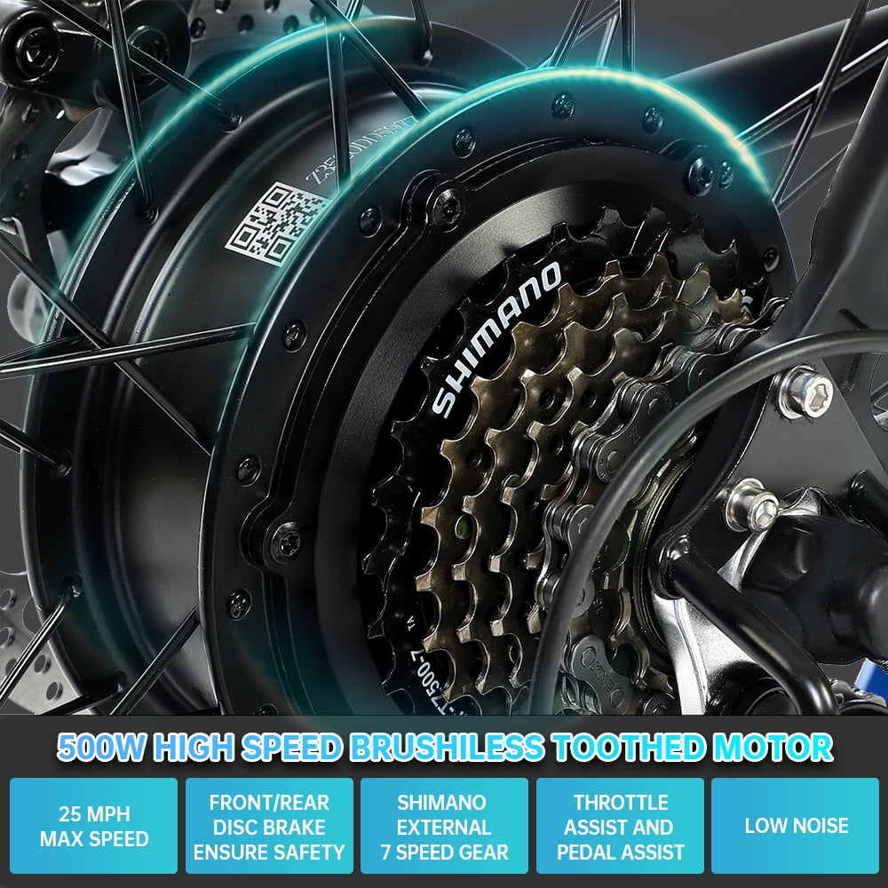 ECOTRIC 500 W 36 V E-Ride Foldable 20“ Electric Bicycle Fat Tire Removable Battery 7 Speed Children A-E516646
