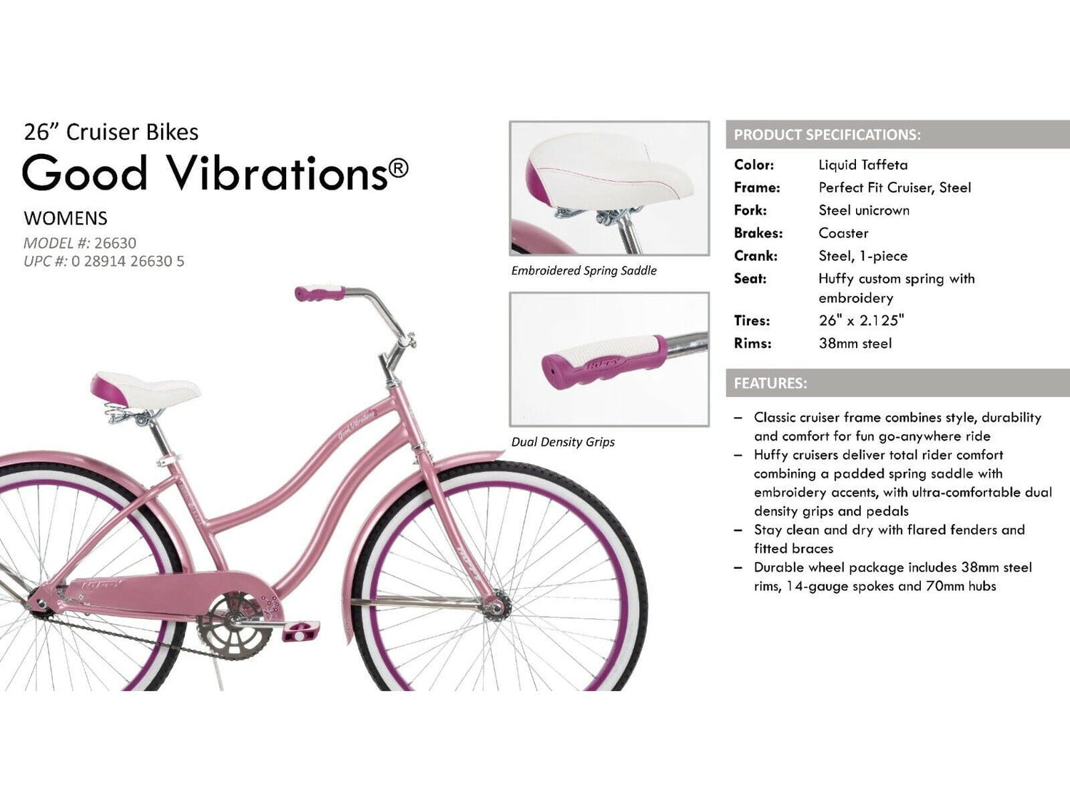 Huffy 26630 26 in. Good Vibrations Womens Cruiser Bike, Pink - One Size