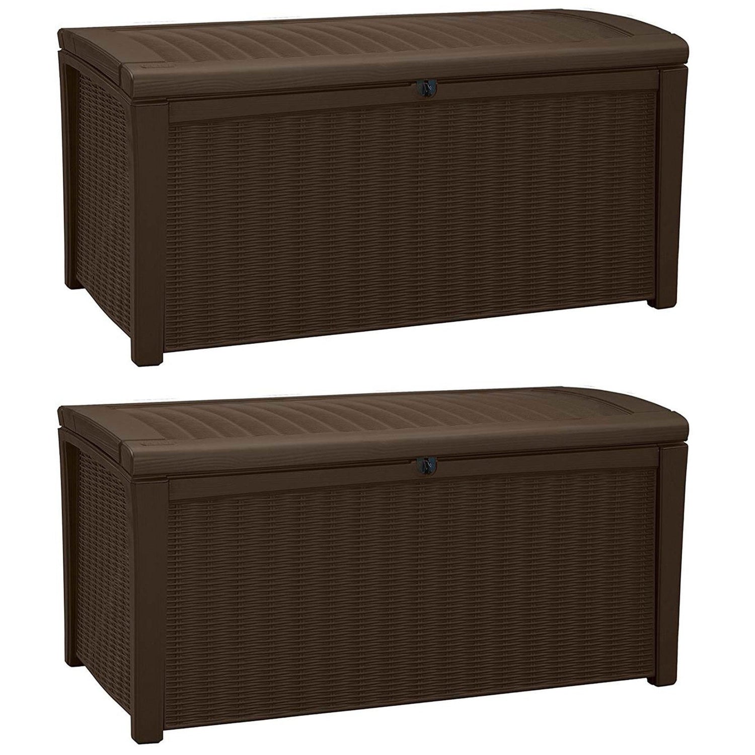 Keter Borneo 110 Gal Rattan Resin Patio Storage Deck Box & Bench (2 Pack)