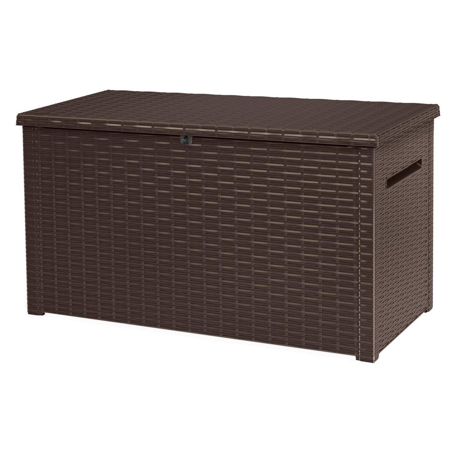 Keter Java Extra Large Rattan Style 230 Gallon Plastic, Resin and Wicker Deck Box, Espresso Brown