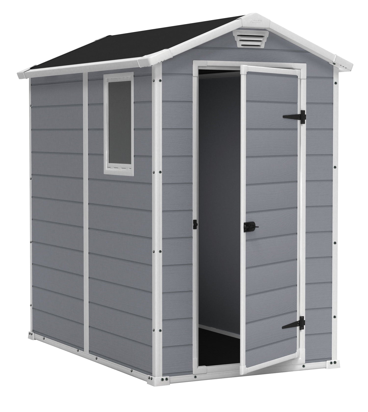 Keter Manor 4' x 6' Resin Storage Shed, All-Weather Plastic Outdoor Storage, Gray and White