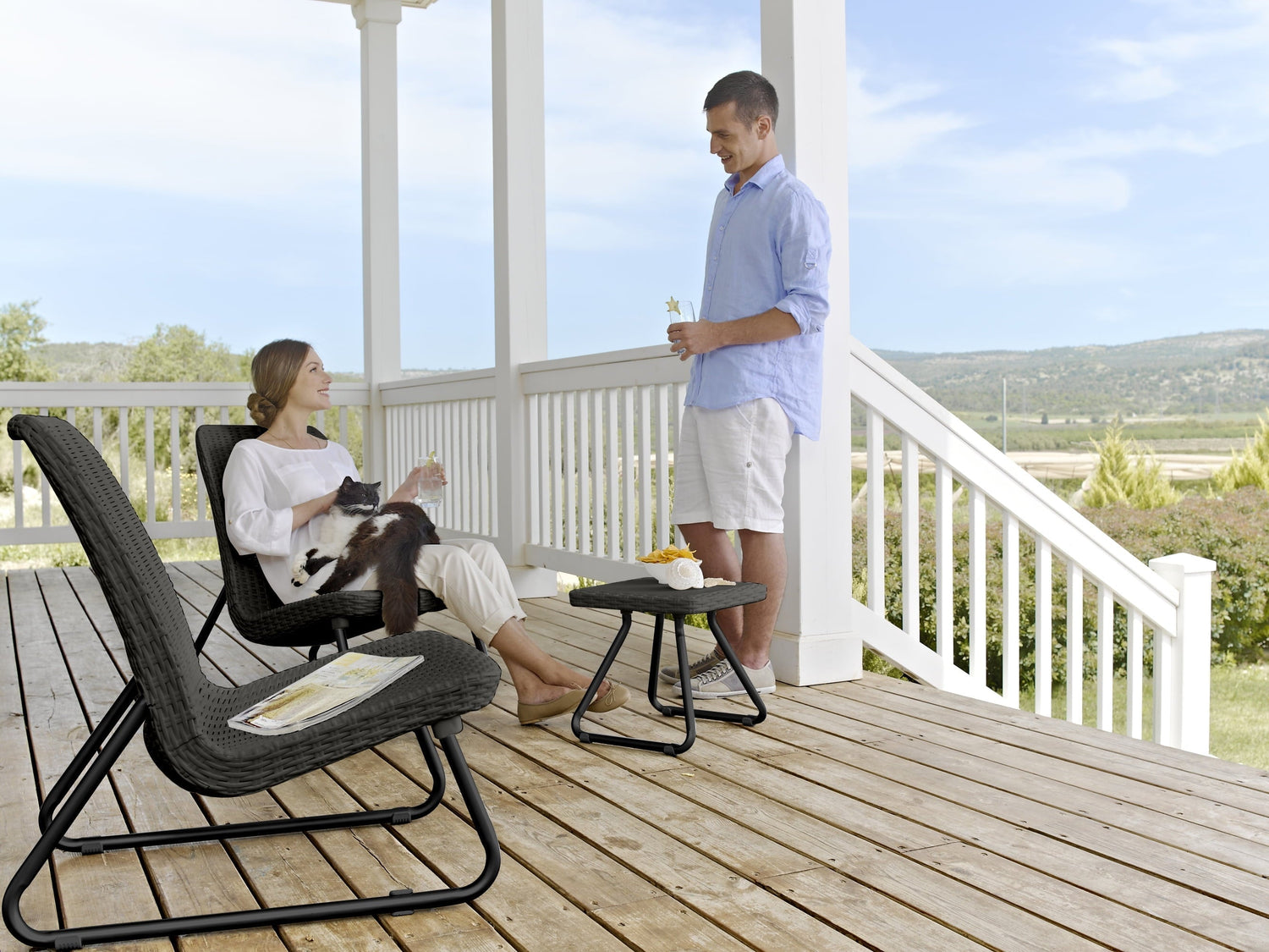 Keter Rio 3-Piece Outdoor Set, All-Weather Resin Rattan Patio Lounge Furniture, Graphite