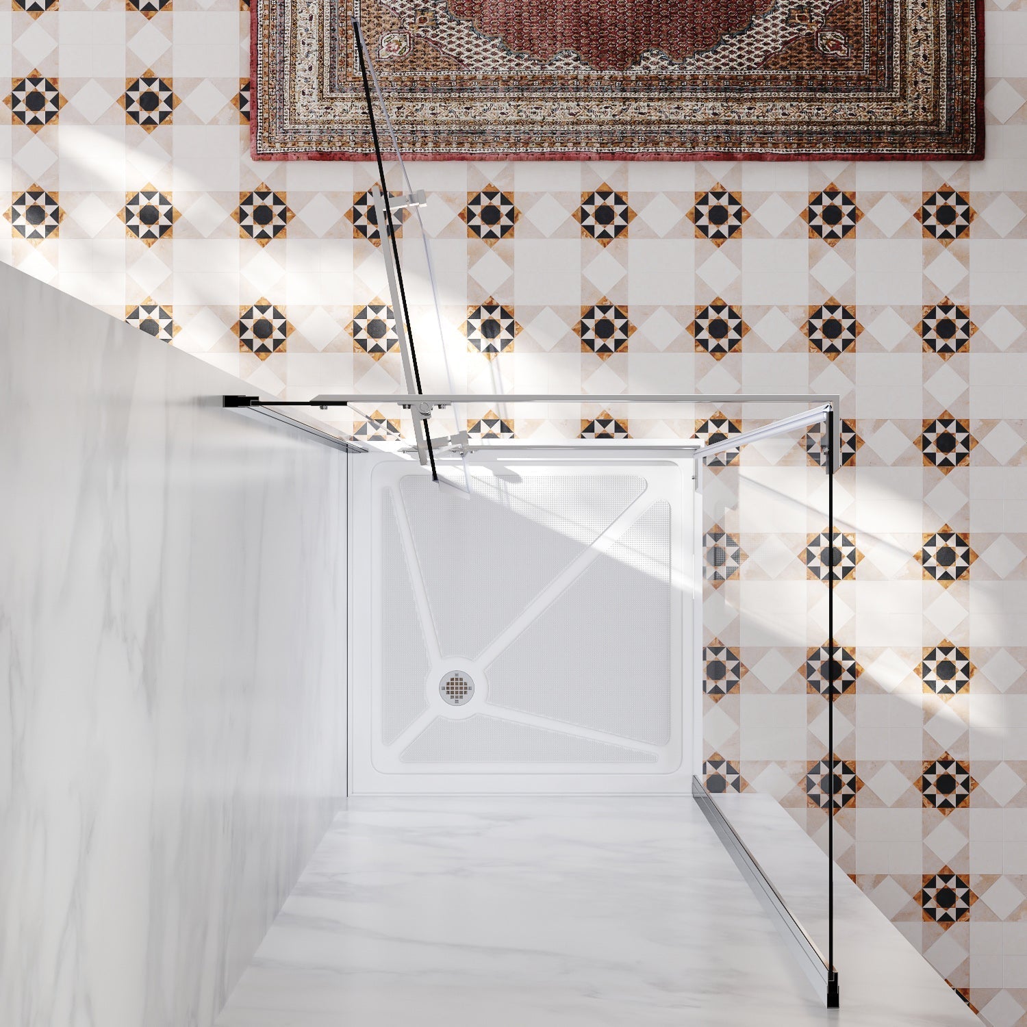 SUNNY SHOWER 36 in. W x 36 in. D x 72 in. H Frameless Chrome Finish Corner Entry Enclosure With Pivot Door And White Square Base