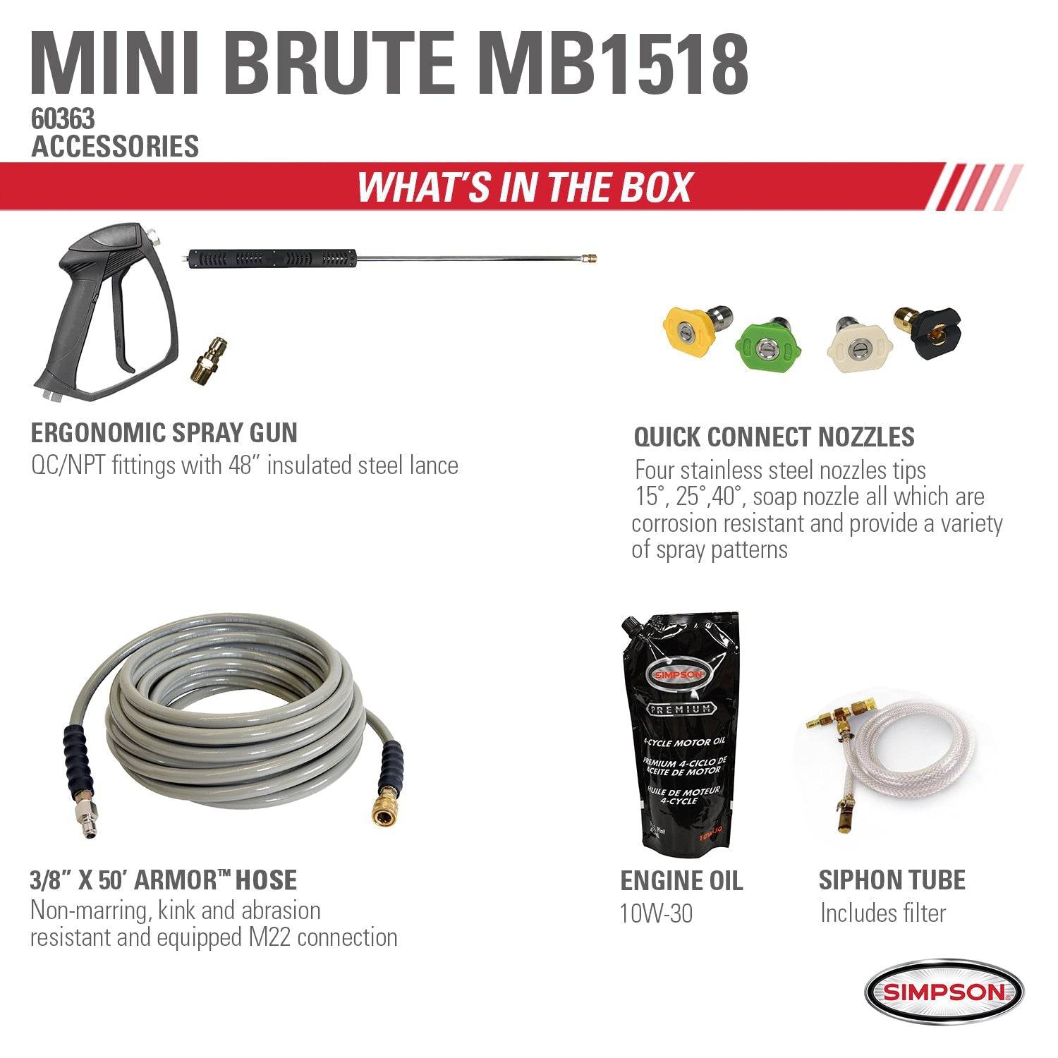 SIMPSON Mini Brute 1500 PSI at 1.8 GPM with Triplex Pump Hot Water Professional Electric Pressure Washer
