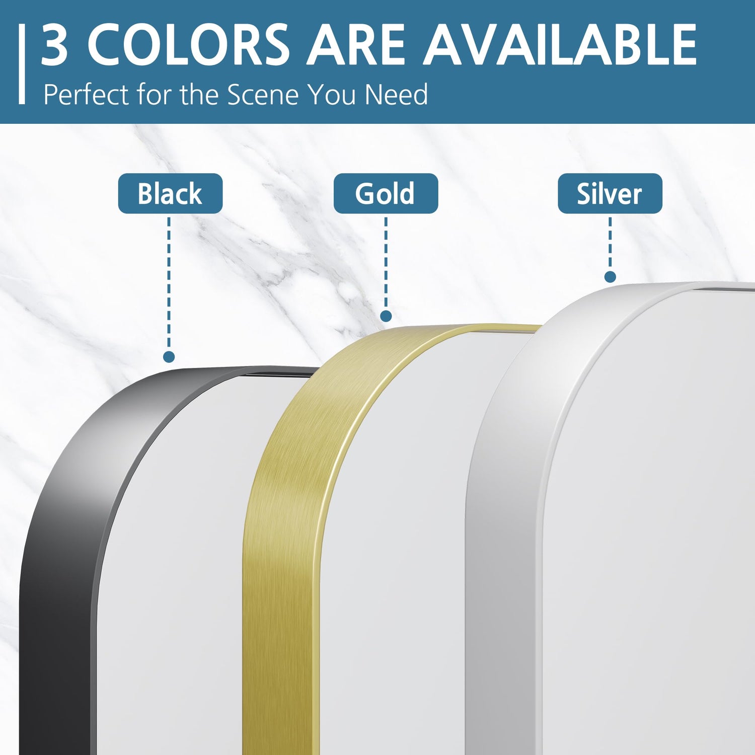 ELEGANT Round Corner Vanity Mirror Wall-Mounted 24 in. W x 36 in. L Brushed Metal